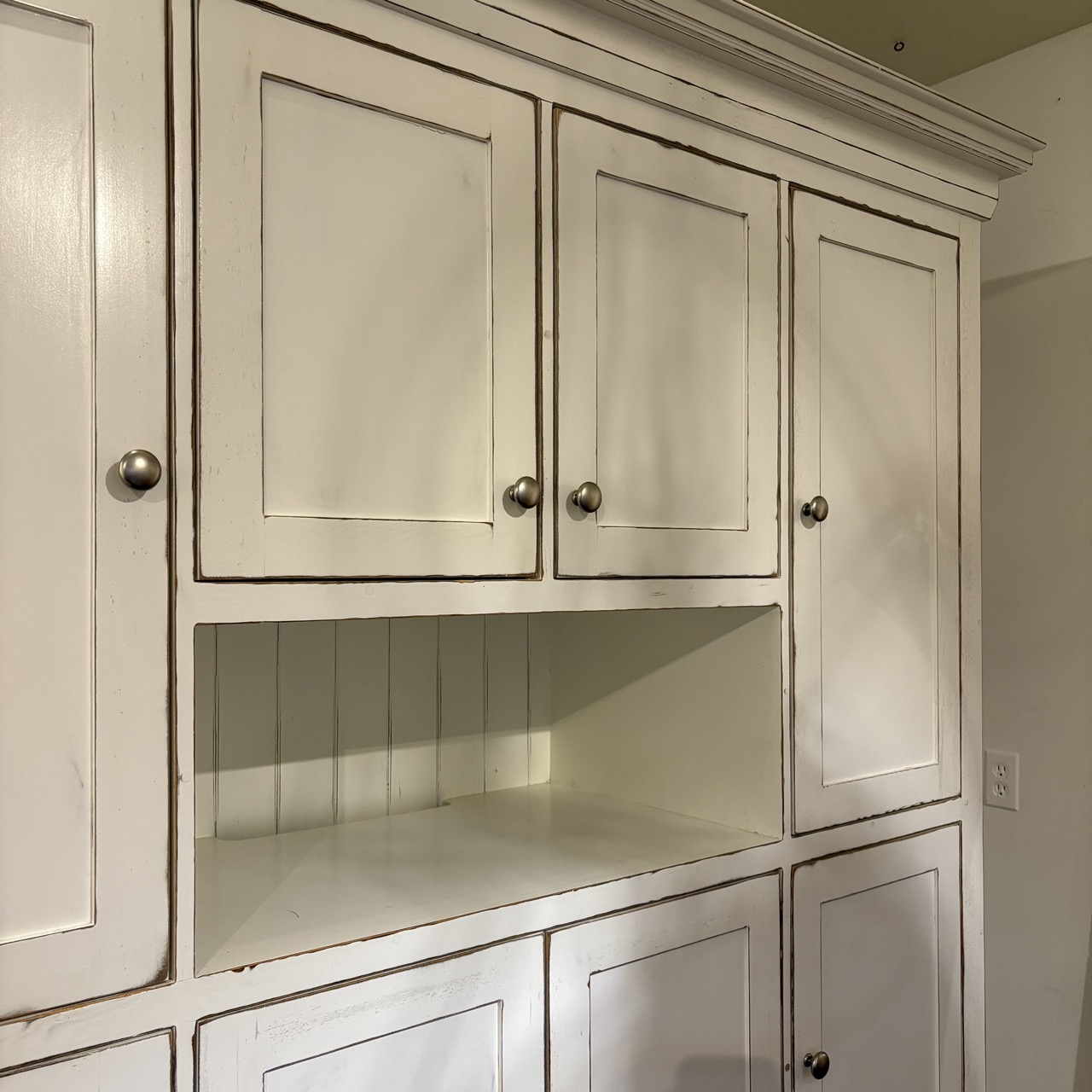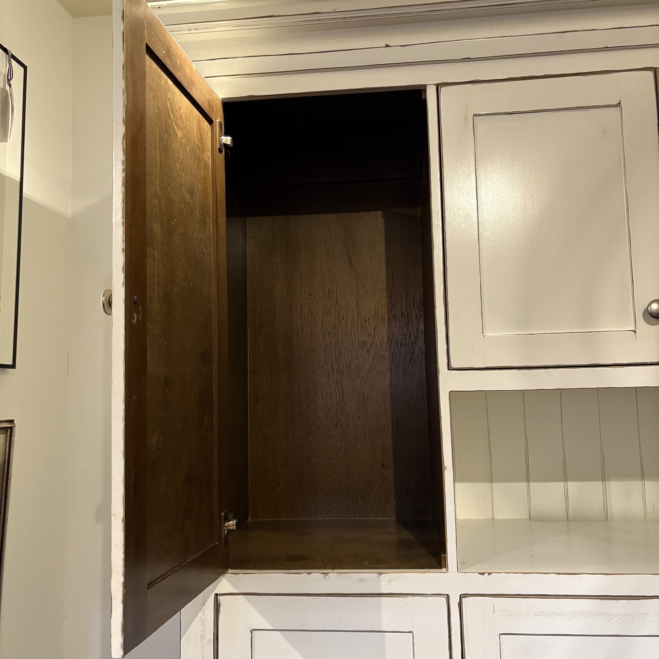 - Drawer on bottom right has been altered to a flip down cabinet door