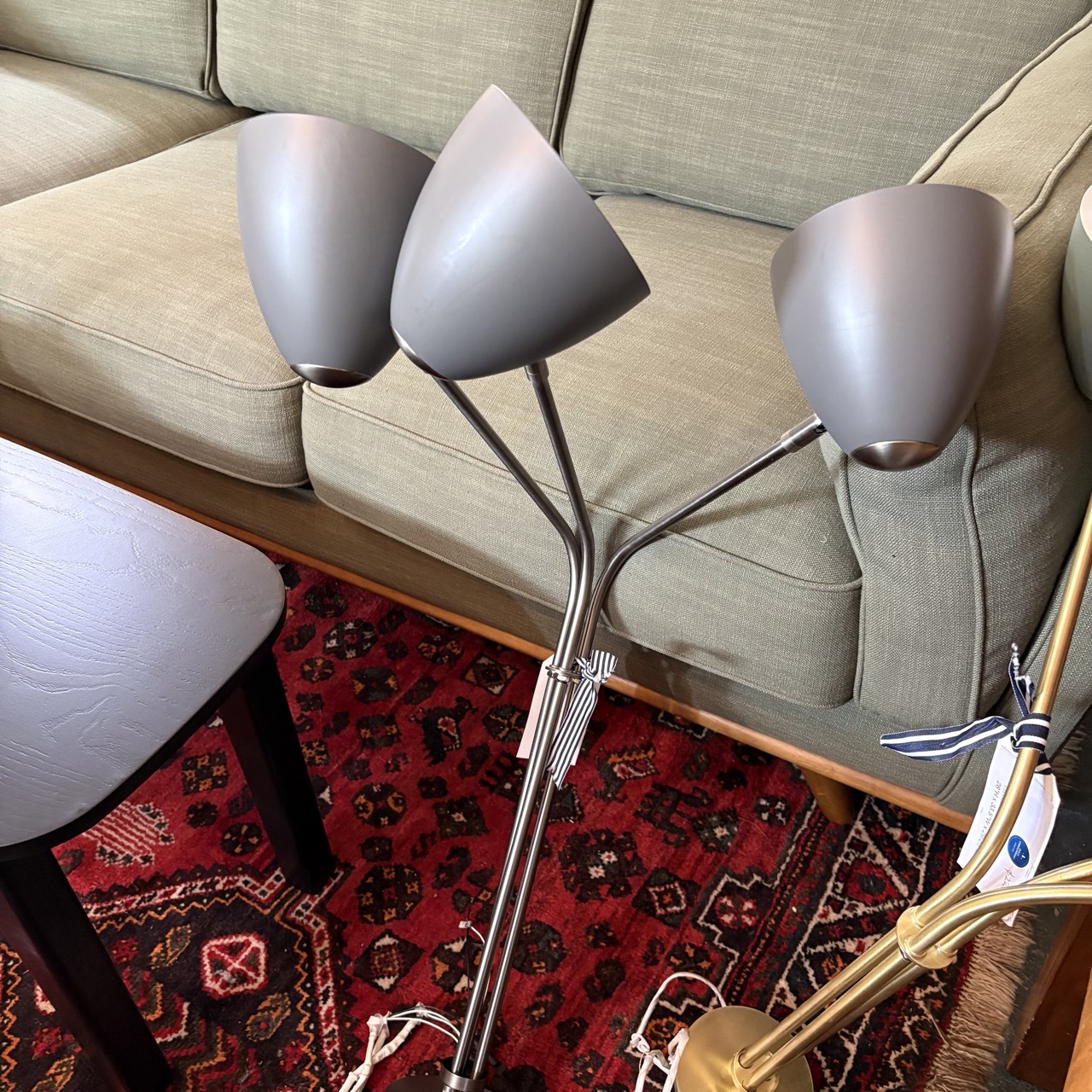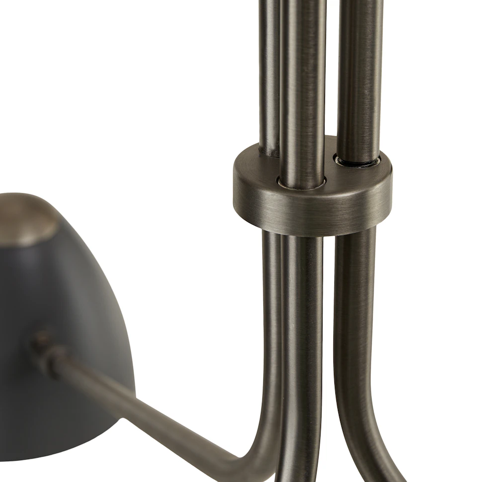 - Powder-coated grey steel shades and canopy