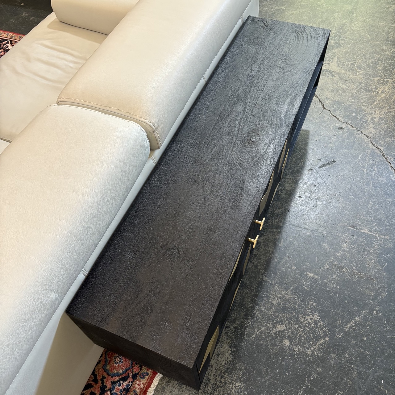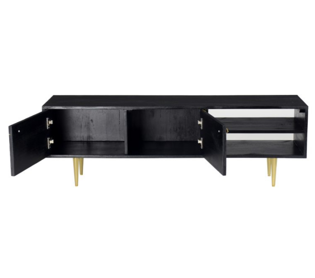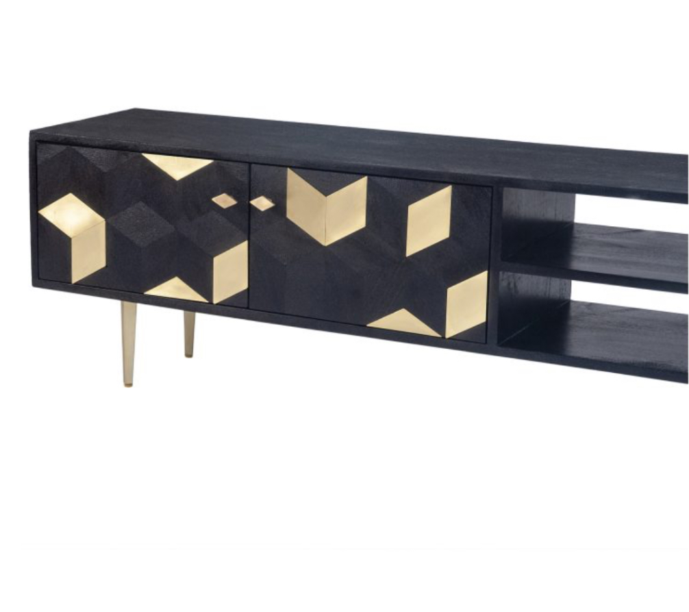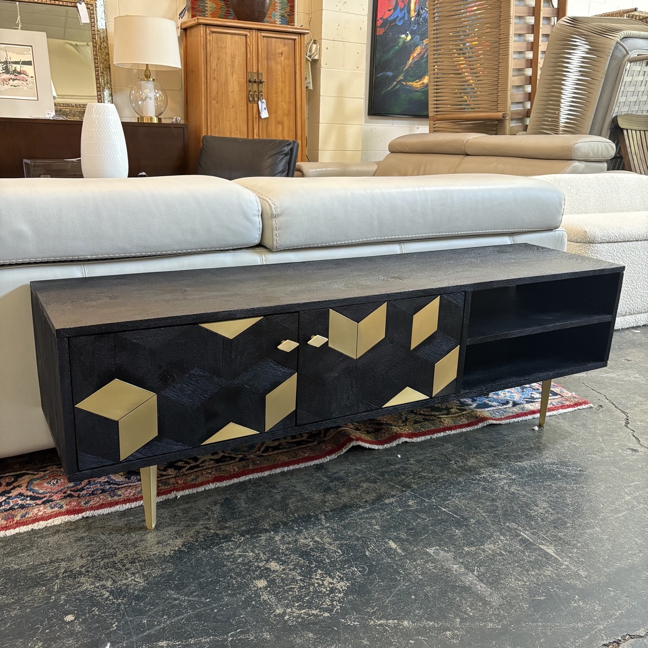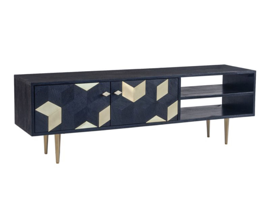 - Chic Art Deco inspired media cabinet with 2 doors and plenty of storage space