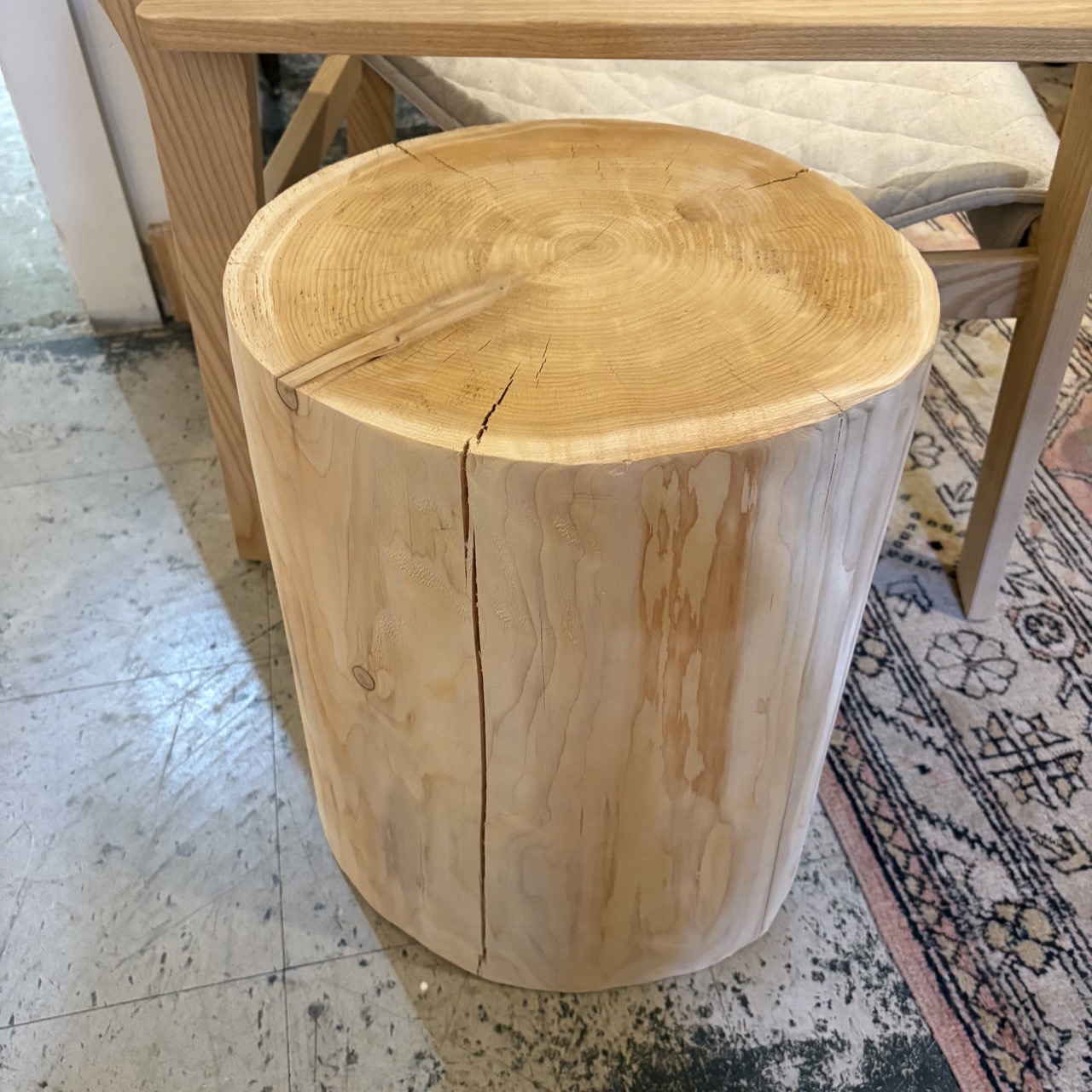• Natural and unfinished hemlock stump, without stain