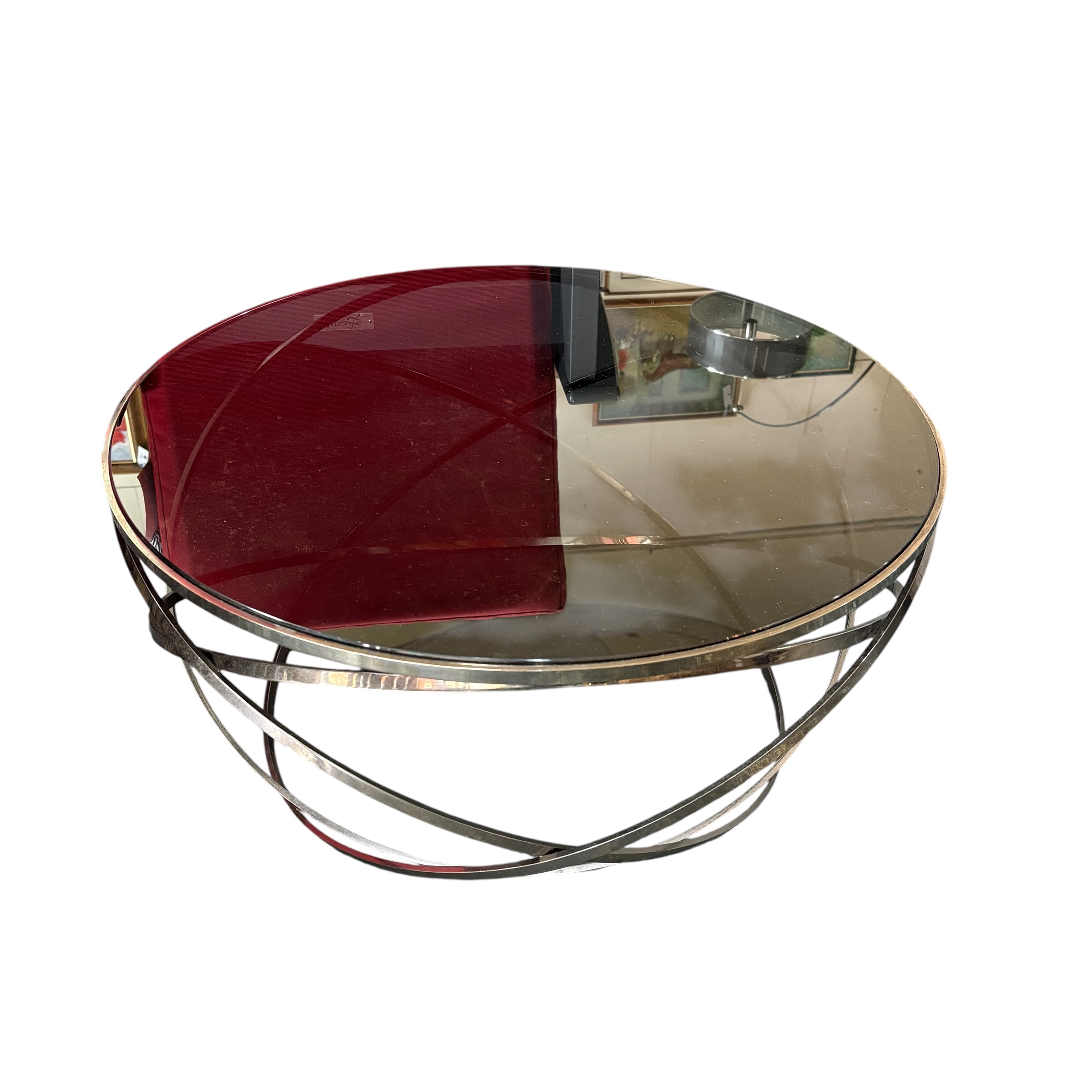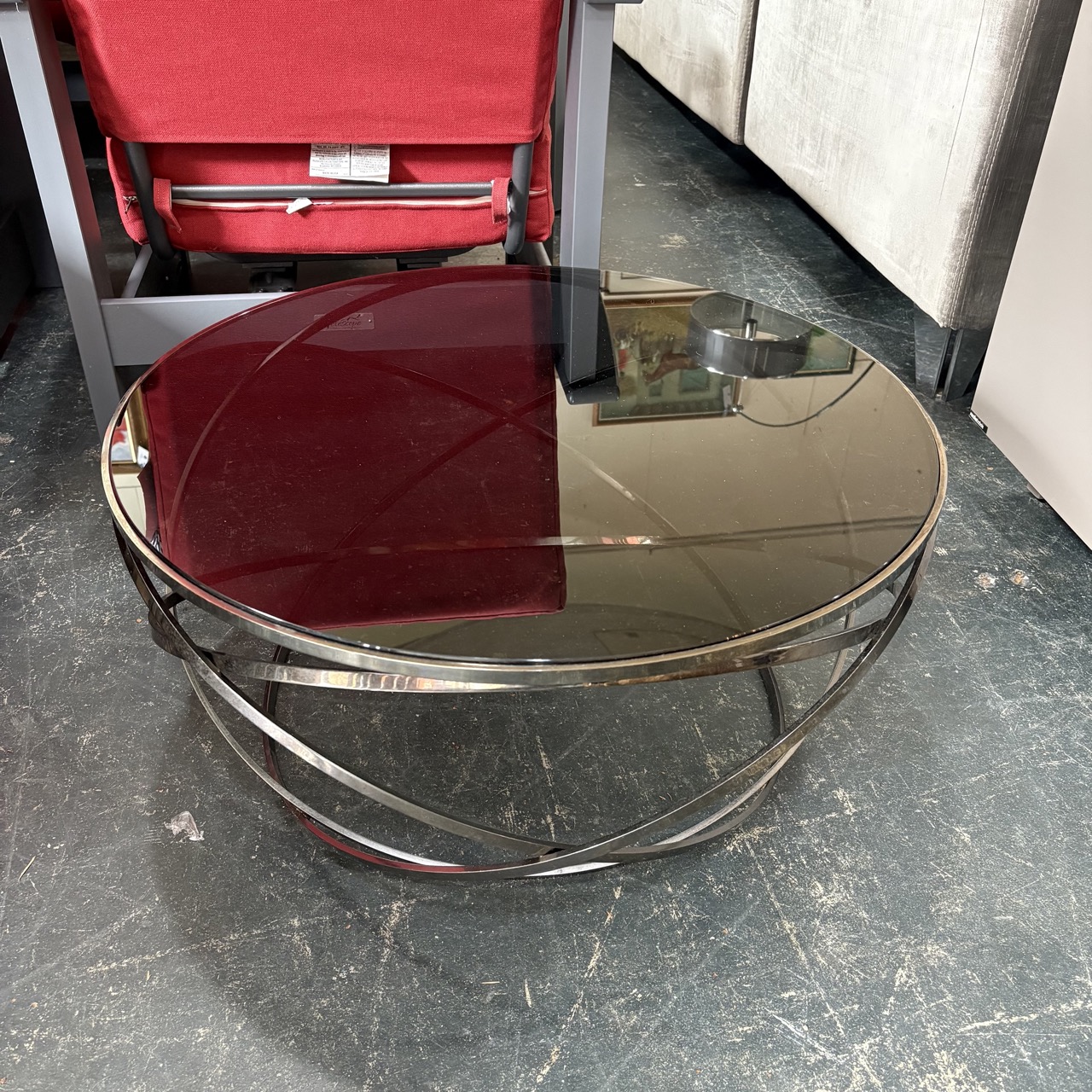 - Smoked glass table top with chrome frame