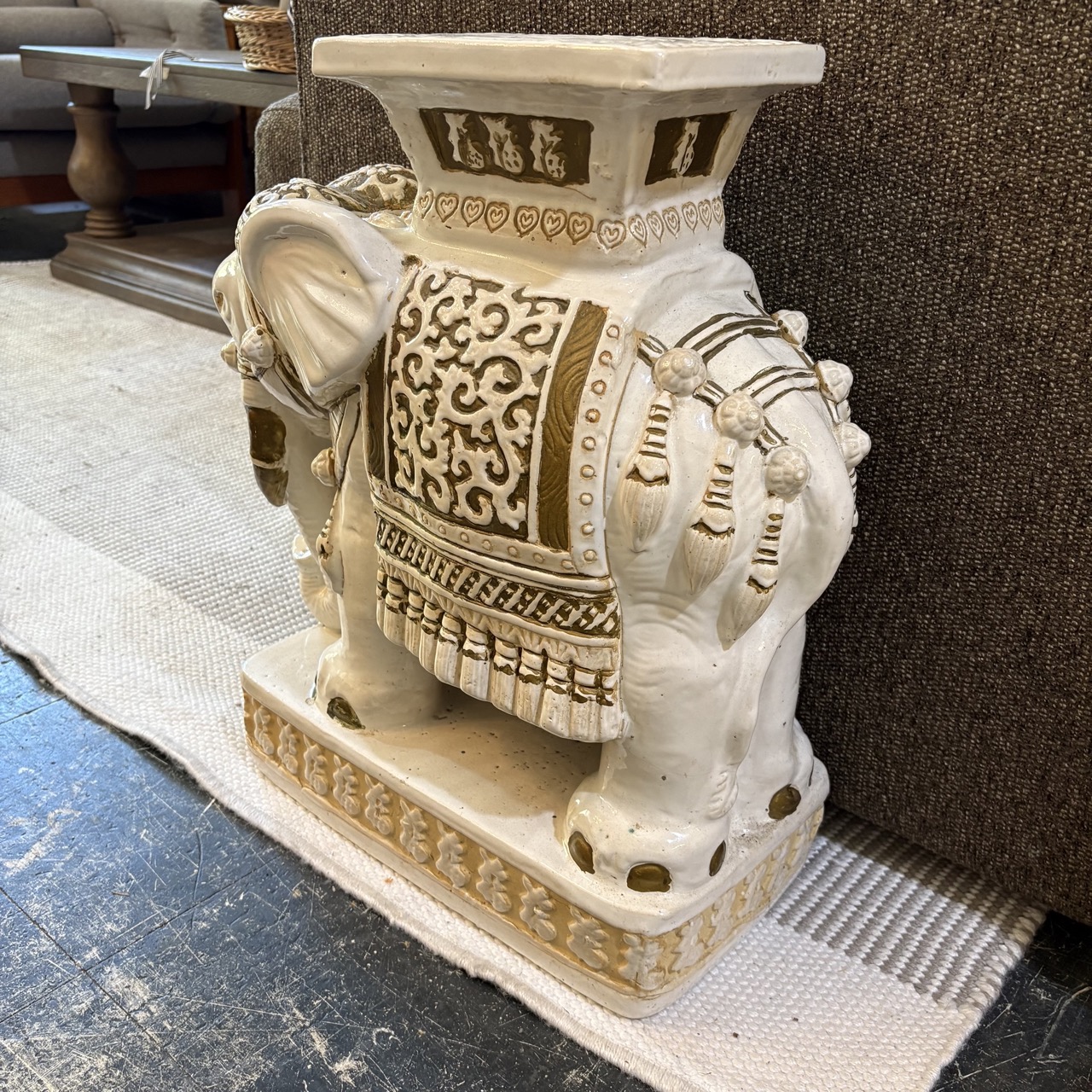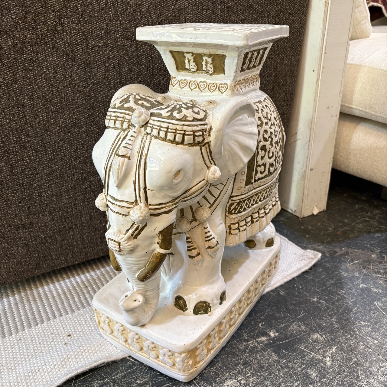 Vintage Ceramic Elephant Side Table
