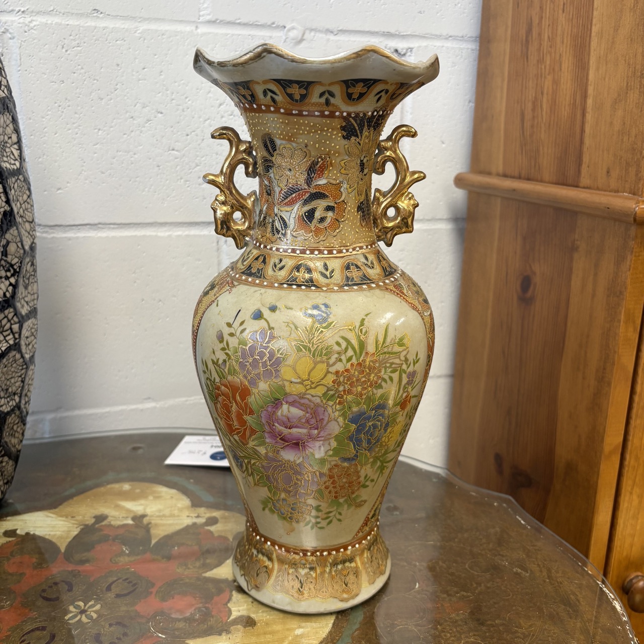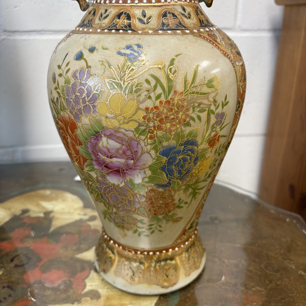 - Fluted top and gold handles in the Satsuma style