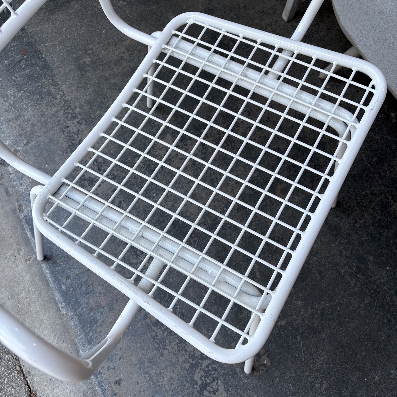 - Tubular steel frame with wire mesh seat and back